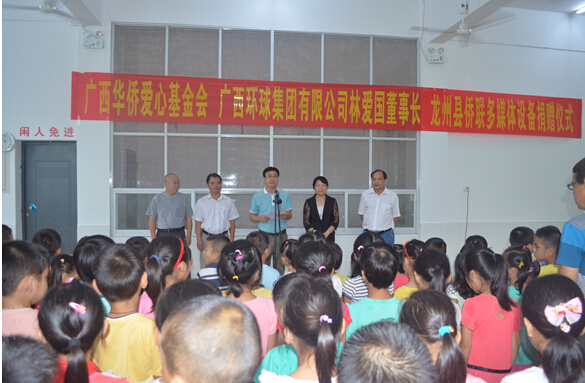 最后,科甲侨心小学覃高峰校长代表学校全体师生向广西华侨爱心基金会、广西环球集团有限公司林爱国董事长、龙州县侨联表示感谢。