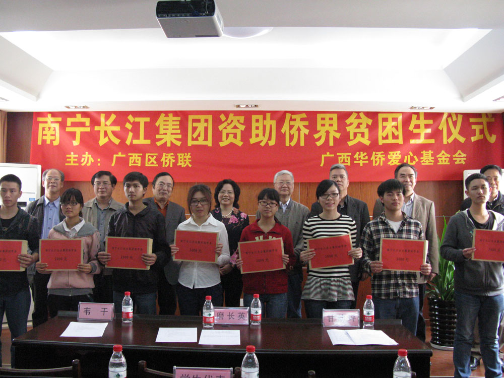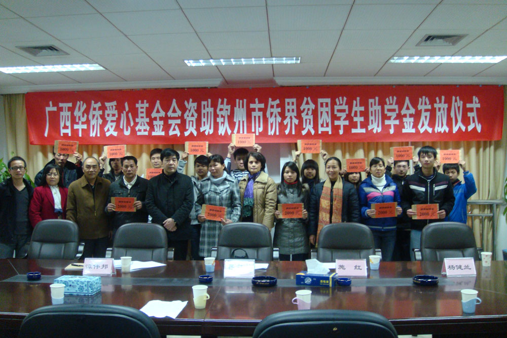 为解决广西侨界贫困生上高中、上大学难的问题,2010年下半年自治区侨联、广西华侨爱心基金会向全区侨眷贫困学生上高中、上大学献爱心,送温暖,使他们园了上学梦。