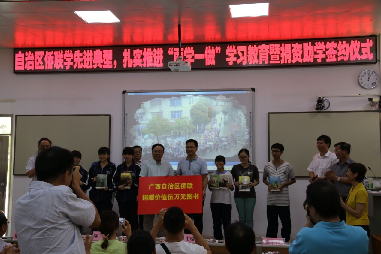 自治区侨联在都安县高中举行捐资助学签约仪式