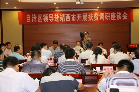 7月7日至8日,我会派代表随自治区政协副主席、党组副书记、自治区党委政法委书记温卡华、原自治区副主席、广东省广西商会创会会长雷宇一行前往靖西市岳圩、龙邦、安宁等乡镇开展精准扶贫工作调研活动。