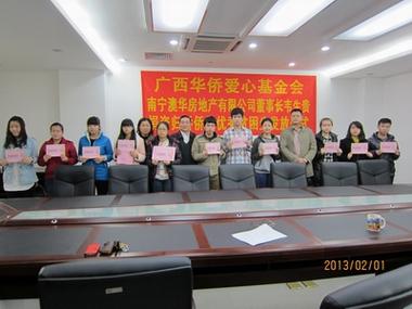2月1日,柳州市侨联举行困难归侨侨眷优秀生助学金发放仪式,共有7名大学生和5名高中生获得广西华侨爱心基金会共计19000元的资助。