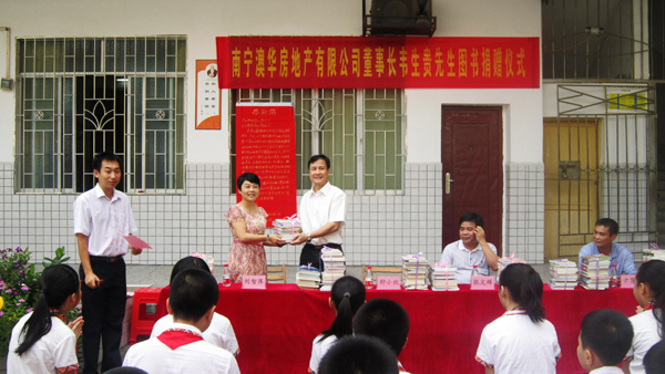 梧州市侨联的牵线搭桥和广西华侨爱心基金会的大力支持下,南宁澳华房地产有限公司董事长韦生贵奉献爱心梧州市大塘小学捐赠了价值6.5万元(码洋)2300多册的图书。这些图书涉及面广,内容丰富,为学生的课余生活提供了良好的精神食粮。学校对广西华侨爱心基金会的捐赠表示由衷的敬意和真城的感谢!并希望广西华侨爱心基金会继续关心支持梧州市中小学的教育,给予更多的帮助。梧州市侨联主席钟小欣代表广西华侨爱心华侨联基金会接受了大塘小学赠送的纪念牌匾以及感谢信。