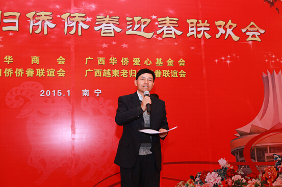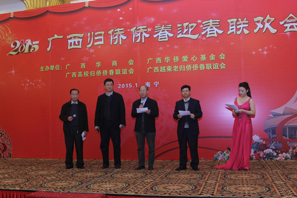 2015年1月25日,由广西华商会、广西华侨爱心基金会、广西高校归侨眷属联谊会、广西越柬老归侨眷属联谊会主办的广西归侨侨眷迎春迎春联欢会在南宁邕江宾馆举行,来自海内外的归侨侨眷共聚一堂,共贺新春。